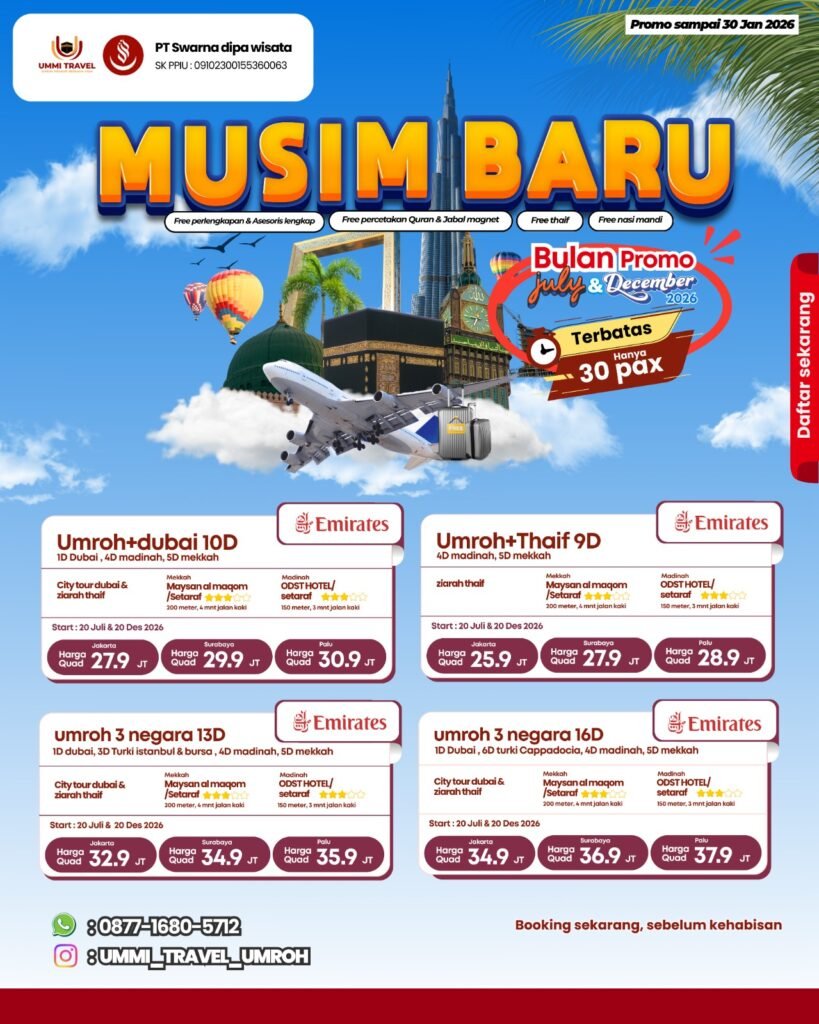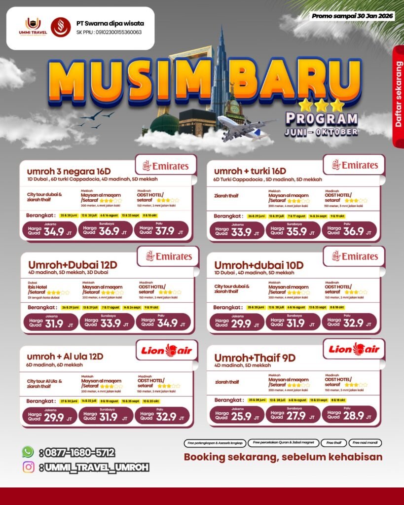 Dengan paket dari UMMI TRAVEL harga bersahabat dan pastinya umrohmu bakalan aman dan menyenangkan